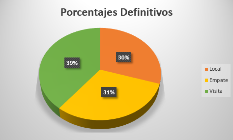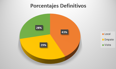 Para finalizar con el análisis, presentamos los porcentajes que brindó nuestro estudio del partido y son los siguientes: