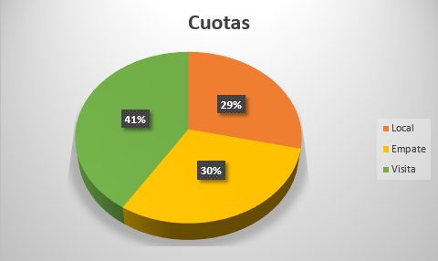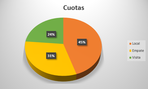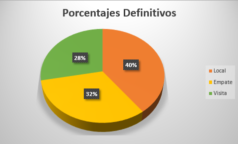 Con todo lo anterior en cuenta y algunas otras variables que afectan directamente el partido, Pronobet otorga los siguientes porcentajes para los posibles resultados del encuentro en la siguiente gráfica: